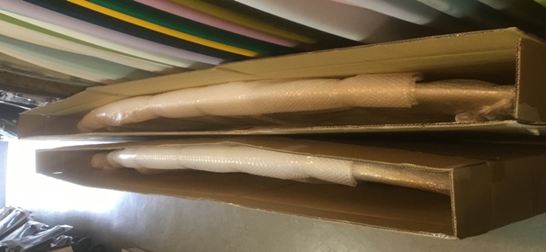 | サーフボードは割れ物なので、エアーキャップでしっかり巻いて大きいダンボールの箱に入れて送ります。 |