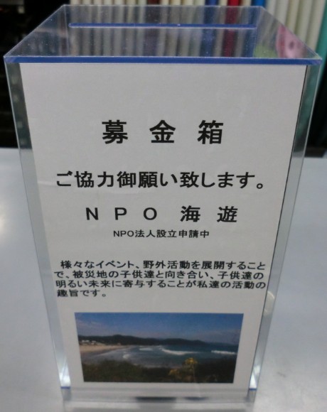 ザ・ブルーサーフの店頭にも募金箱を作りました。