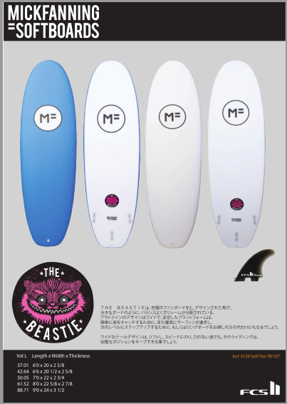 | 2018年からミックファニングソフトボードも販売開始となり、取り扱いはじめました。 | ||||||||||||