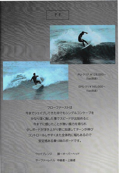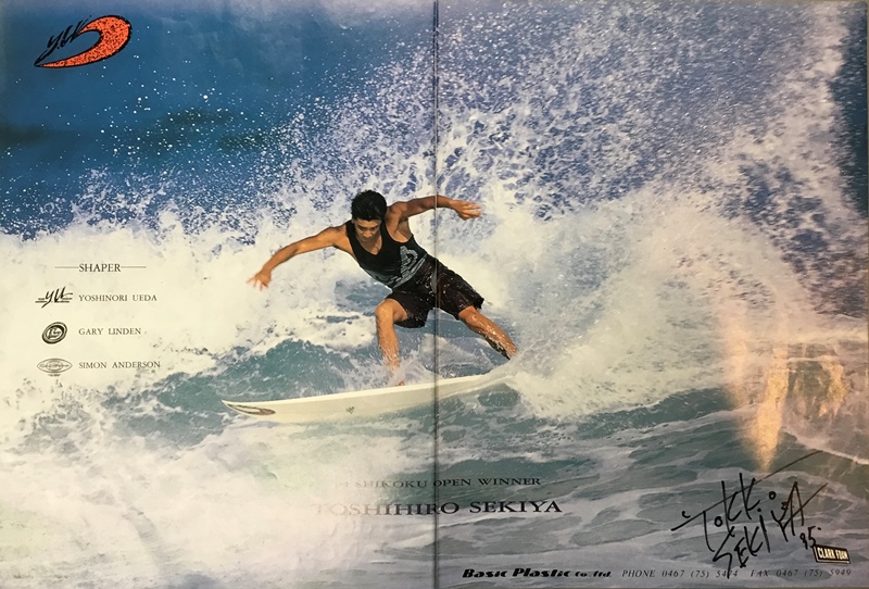 | ちなみに30年ほど前ですが、関谷利博プロが現役ツアープロ選手で大会を転戦してる頃、 YU植田さんシェイプのボードで幾度も好成績を残しました。言わばYUチルドレンです。 |
