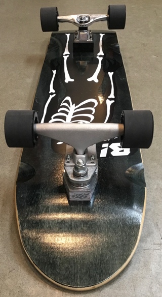 | ショートボードのサーフィン時のレール・トゥー・レールの動きにより近づきました。普通のスケートボードに比べると フラフラするくらいの乗り心地ですが、水の上の感覚に一番近いタイプなのでやわらかいターンから ∞を描くようなライディングを目指している方には大変お勧めの一品です。 |