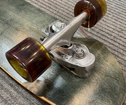 | フロントのトラックにこのパーツを付けるだけでも、よりサーフィンのターンに近づけます。 今使っているスケボーに取り付けるだけでウィ−ルがくい付くようなイメージになります。 41”位のロンスケをお持ちの方には、特におすすめです。 |