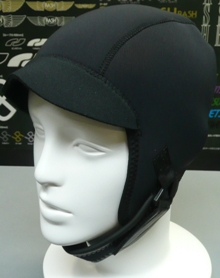 冬用のキャップとして頭部はウエットジャージ素材で