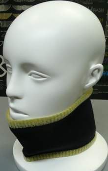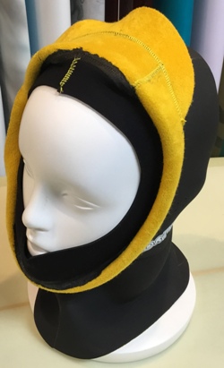 冬用のハットとして頭部はウエットジャージ素材で