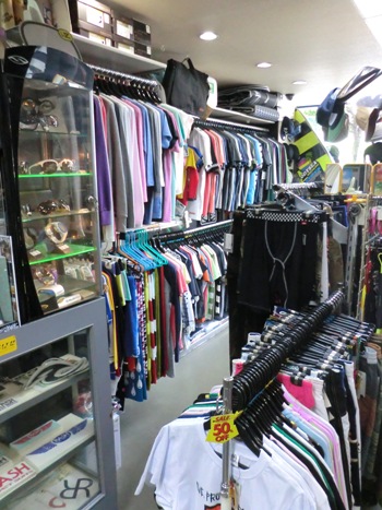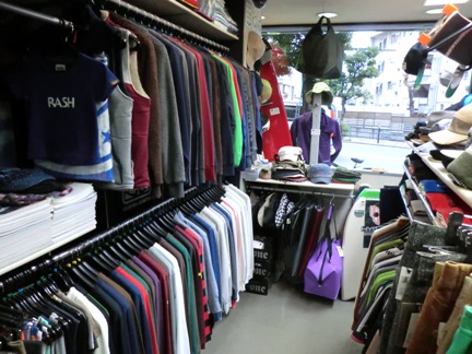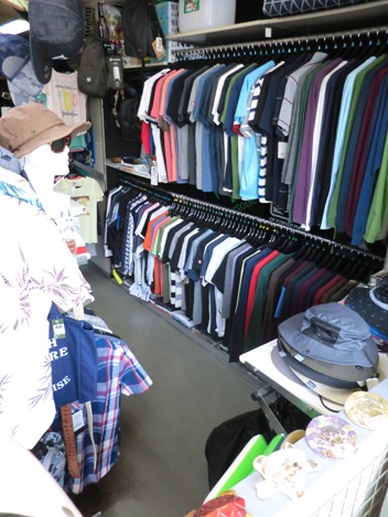 | ロンティー・Tシャツ・トランクスなど海外脱出のために必要な アイテムも店頭に置いてます。 スエットパンツやデニムパンツやキャップなどもあります。 |