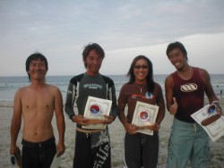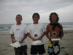| この大会はNSA三重支部の方々が主催・運営する大会で、国府の浜をサーフィン場として永遠に守っていくために 地元サーファーだけではなく地元住民の方や他府県のビジターサーファーにも意識を持って海をきれいにして 頂きたいという願いをこめて今年で17回目の開催となりました。 特別な会員登録などはないので、どなたでもエントリー可能です。 |