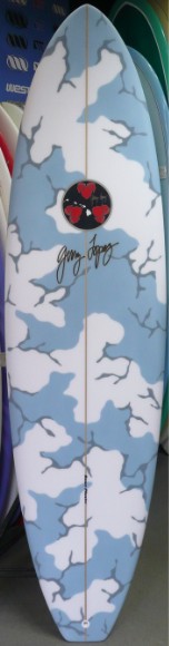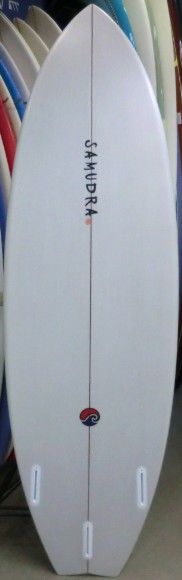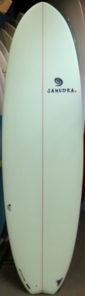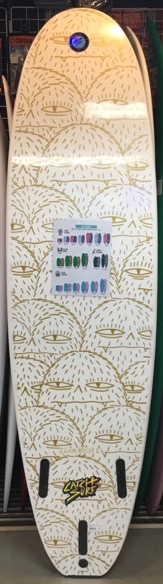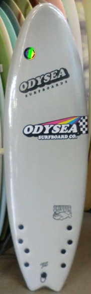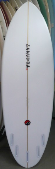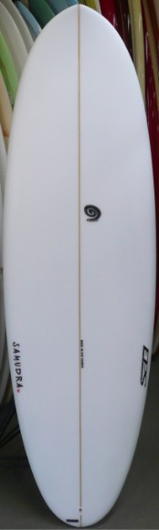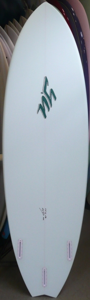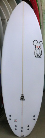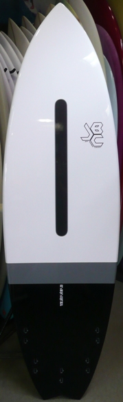 | 安定性となめらかな乗り心地をイメージしてデザインされたSQ Smoothie をEPS素材でシェイプし、時と場合によってQUAD 4FIN でも遊べるよう5プラグ調整してもらったスペシャルエンジョイイージーボード |