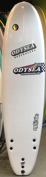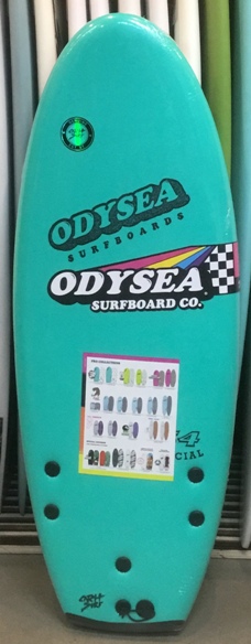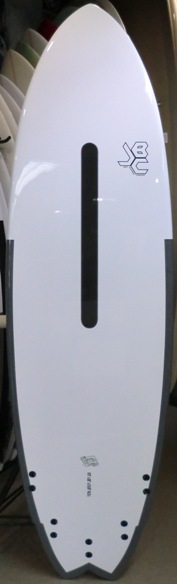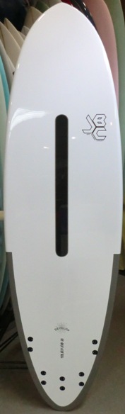 | 安全に楽しめるソフトボードですが、このボードにもストリンガーシステムが施されてます。フィンは取り外し式でたいへん便利です。 |