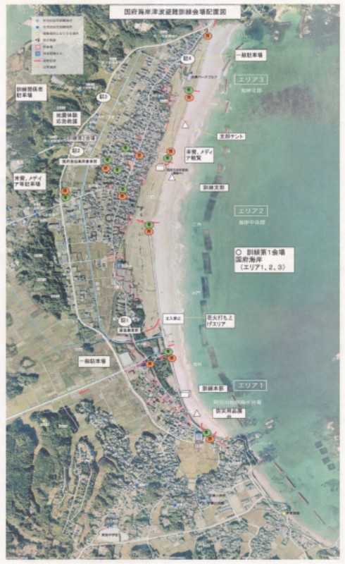 この上空写真は’06年津波避難訓練のために国府の自治会の方から入手した写真ですが