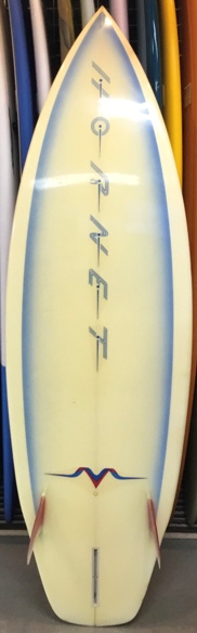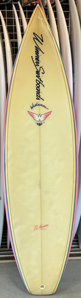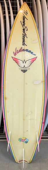 | 蛸さんシェイプのいい波を意識したシャープなボードでオンフィンの年代物ですが、とてもきれいな状態で、程度はたいへん良好です。 |