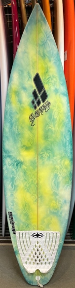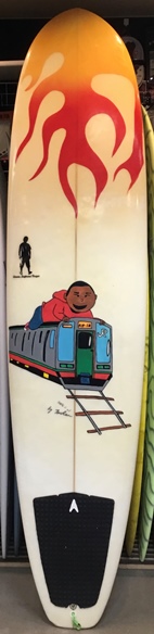 | 小柄なライダーがハワイ用にシェイプしてもらったいい波用のボードです。でかい波や力のある波で練習したい方にお勧めです。 |