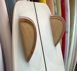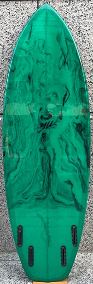 | 植田さんシェイプのEPSでスクエアノーズ、フラットデッキ、ステップレール、2CHコンケーブ、ウィングハーフムーン、5BOX、フルカスタムボードです。 |