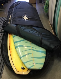 | ちょっと薄めな5mmプロテクションパッドを使用したデイケースで、トライフィンを付けたままでも入るようにテール付近には余裕があります。 |